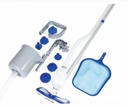 Додаткова інформація: Сумісність: басейни до 4,5 м; Довжина палиці: 1,61 м; у комплекті: паличка, сітка, насадка для пилосососа, дозатор хімії, термометр, pH-вимірювач, ремонтні накладки; вага: 1,43 кг